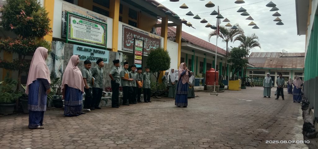 Aceh Tengah, (7/08/25) — Kepala Madrasah Tsanawiyah Negeri (MTsN) 1 Aceh Tengah, Ibu Fashihah, S.Pd.I., M.Pd, memberikan pengarahan khusus kepada seluruh siswa kelas VII terkait pentingnya kedisiplinan di lingkungan Madrasah. Kegiatan tersebut dilaksanakan di lapangan Madrasah mulai pukul 08.00 WIB hingga selesai, sesaat setelah para siswa mengikuti kegiatan literasi pagi.